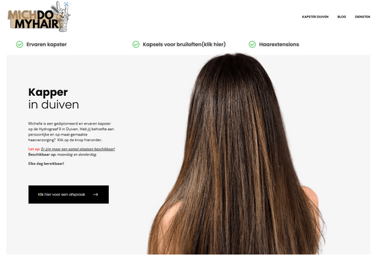 Een website moet producten verkopen of nieuwe klanten opleveren. Of je nu kapper, bouwvakker, advocaat of een ander beroep hebt: het doel is dat bezoekers eenvoudig contact opnemen of een afspraak maken. Met duidelijke foto’s, sterke teksten en een strak ontwerp zorgen wij dat jouw website vertrouwen wekt en bezoekers omzet in klanten.