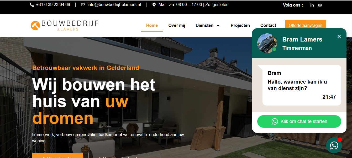 De website hier rechts met alle knoppen en functies is gebouwd voor bouwbedrijf-blamers.nl en kostte €1250.