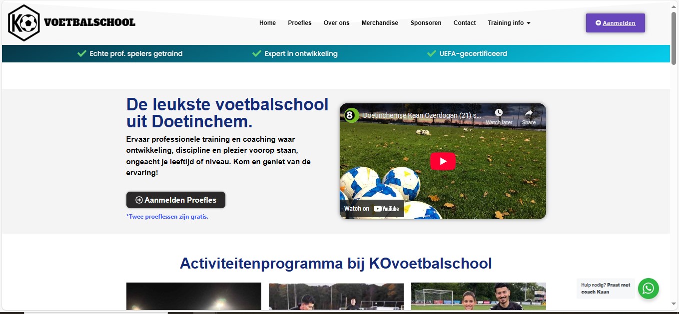 Uitstekende service en topkwaliteit! Wij van KOvoetbalschool zijn ontzettend blij met de website die Muhammed en Mike voor ons hebben gemaakt. Alles ziet er professioneel uit en werkt perfect. Wat dit team bijzonder maakt, is dat ze altijd met je meedenken en bijsturen waar nodig, zodat je bedrijf online beter kan worden en beter gevonden kan worden. Daarnaast ontvangen we dagelijks updates over onze statistieken, zodat we precies weten hoe we ervoor staan. Een topbedrijf met persoonlijke service, een echte aanrader! KOvoetbalschool